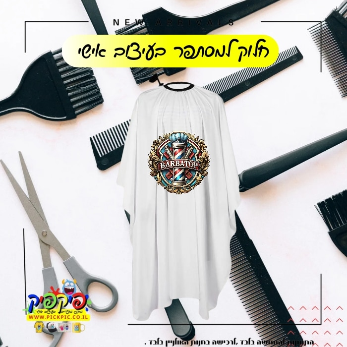 הדפסה על חלוק תספורת בעיצוב אישי  מתנה מקורית לספר עם טאץ'