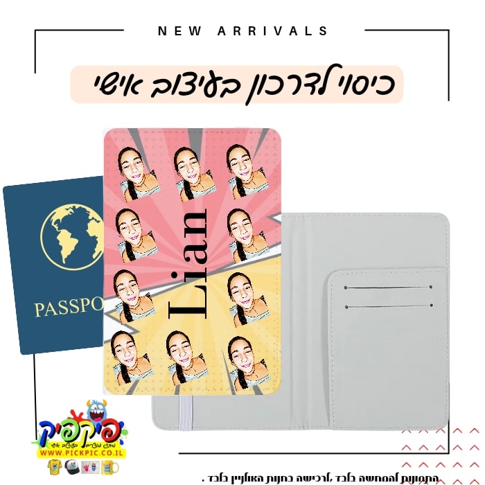 כיסוי לדרכון עם שם או תמונה בעיצוב שלכם.